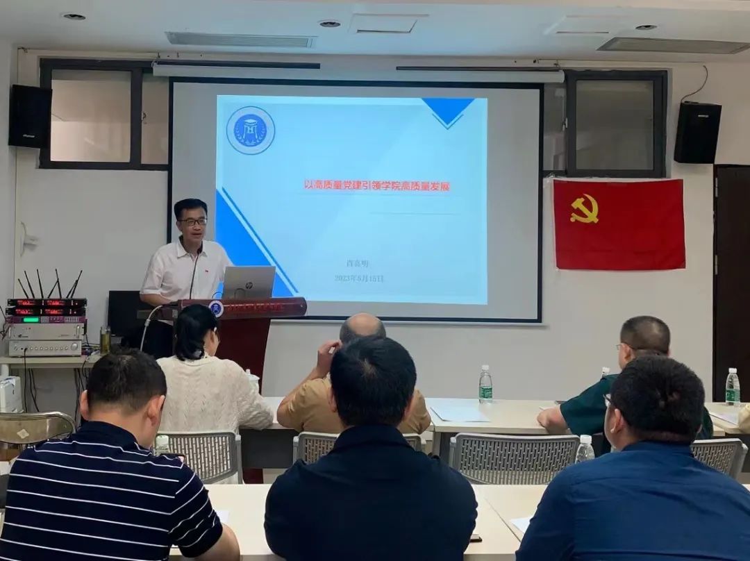 5月15日上午,商公司党委在大学城校区院系楼366开展学习贯彻习近平新时代中国特色社会主义思想主题教育专题党课,党课主题为“以高质量党建引领公司高质量发展”,公司党委书记肖喜明主讲,公司党政领导班子、系(部)主任、党支部书记等参加。