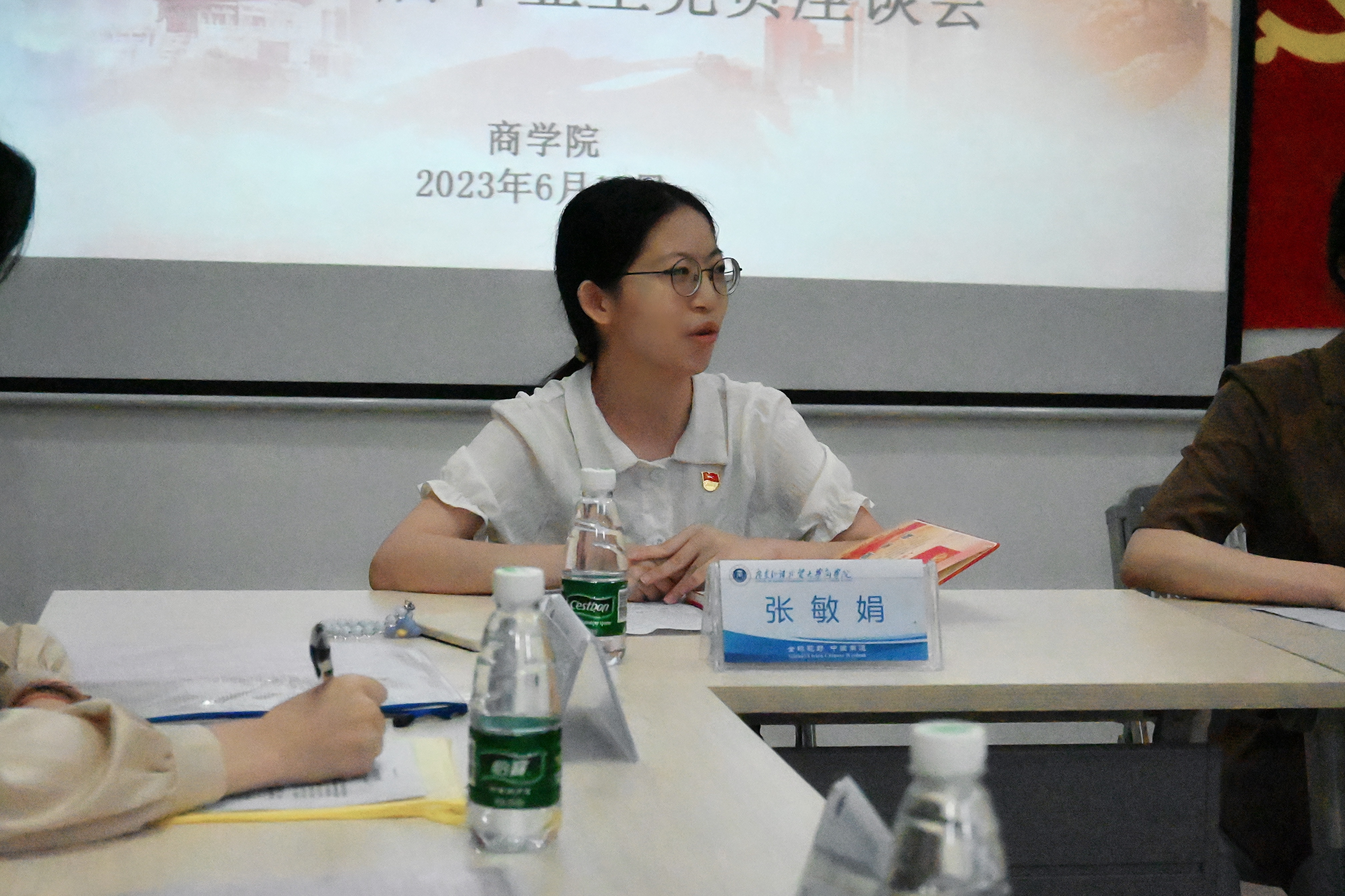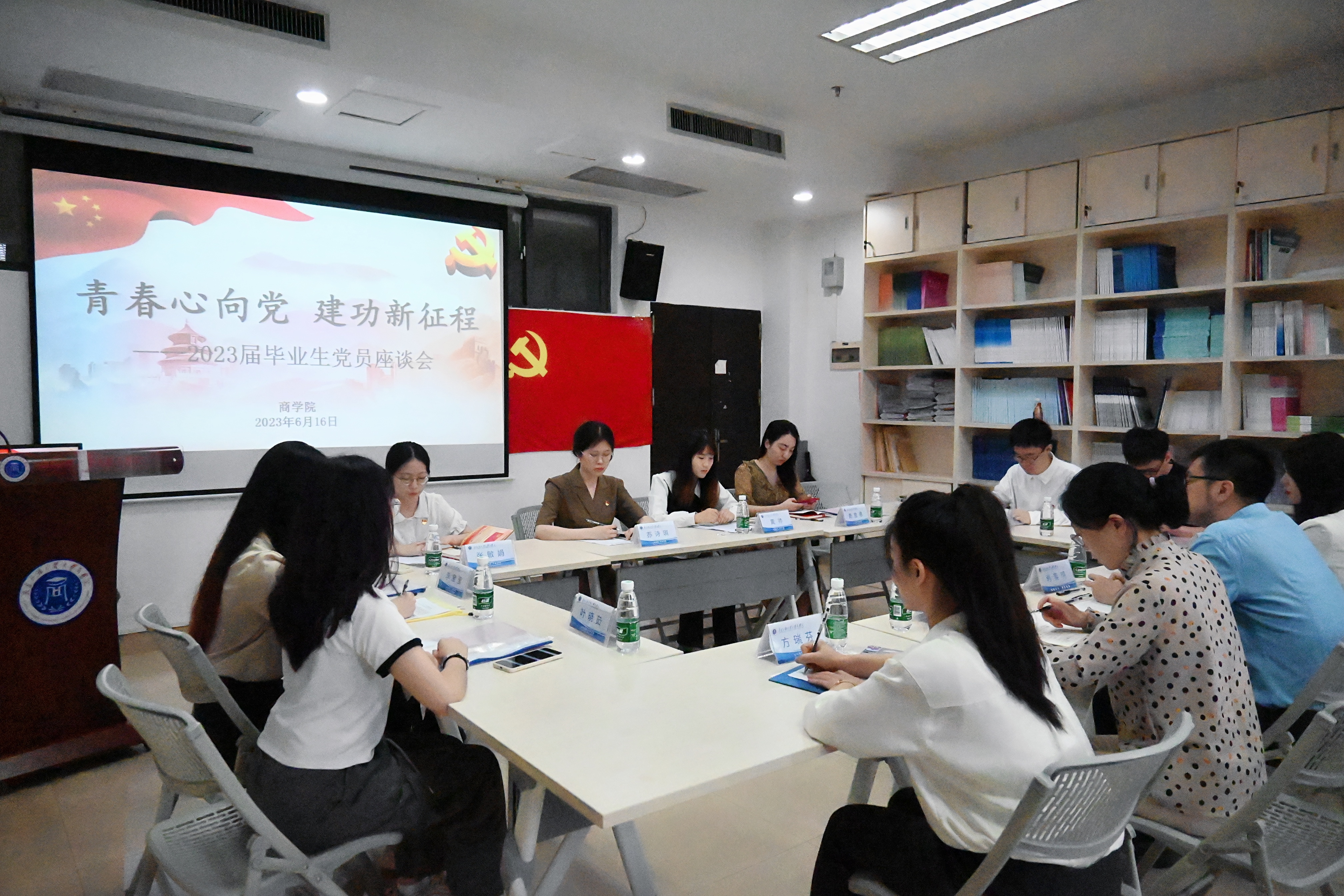 2023年6月16日,bevictor伟德官网2023届毕业生党员代表座谈会在大学城校区院系办公楼366会议室举行。本次会议结合主题教育要求,围绕“青春心向党,建功新征程”展开交流。商公司党委书记肖喜明、党委副书记沈长霞、党委组织员向媛薇、员工党建研究会指导老师方瑞芬及各支部毕业生党员代表出席。本次座谈会由沈长霞主持。