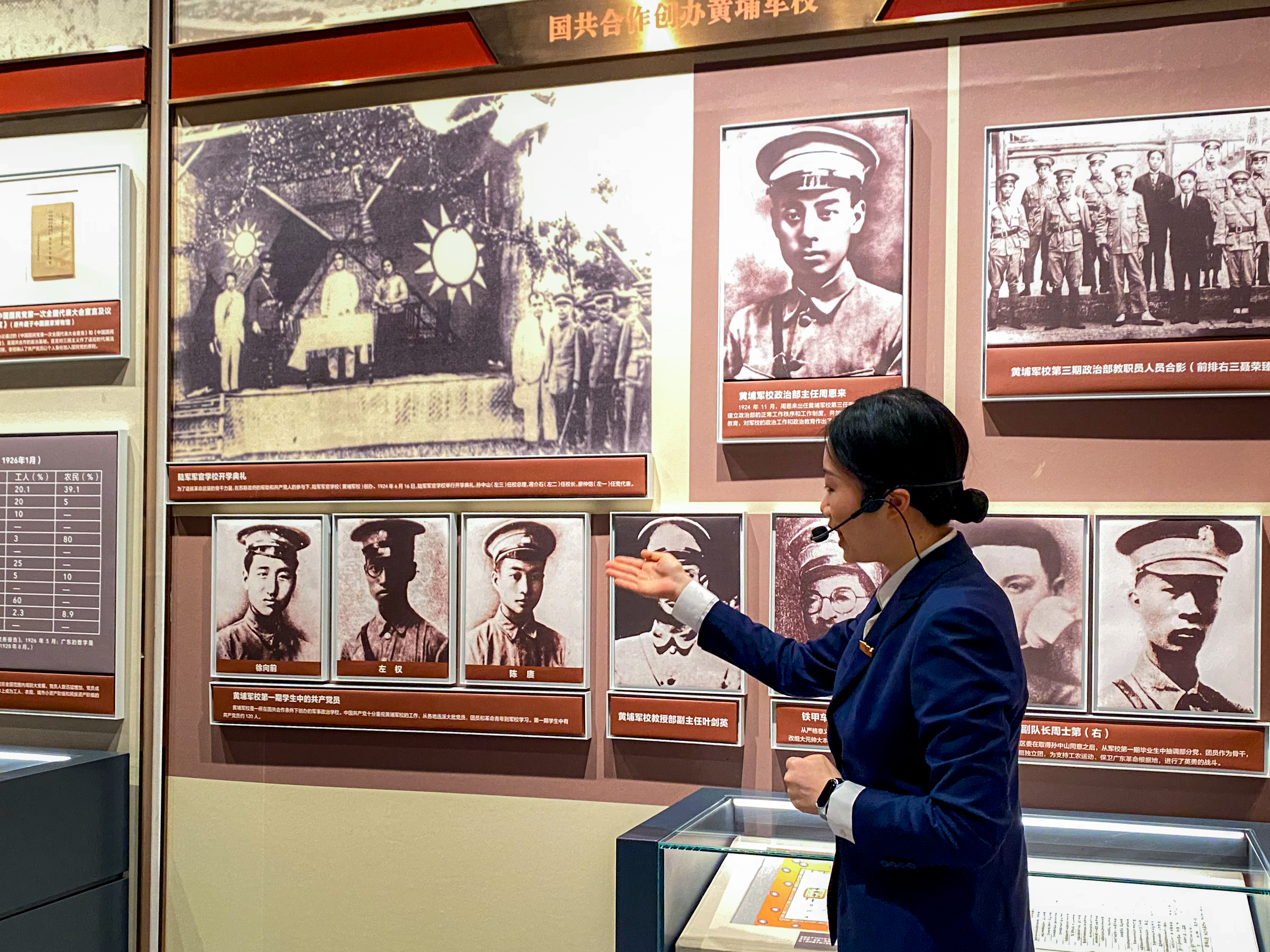 讲解员在介绍农讲所开办的历史背景