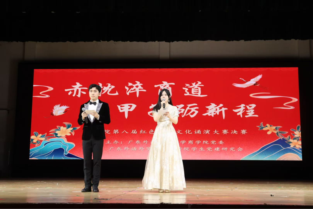 4月11日,bevictor伟德官网第八届“赤忱淬商道,甲子砺新程”红色经典文化诵演大赛在大学城校区大会堂举行,以红色诵演致敬抗战胜利八十周年,献礼母校六十华诞。机关党委六级组织员宾锐光、校团委副书记薛达、马克思主义公司形势与政策和社会实践教学部主任邓晶晶、商公司党委组织员秦雨担任评委,商公司党委书记肖锋、副书记沈长霞及辅导员出席活动。