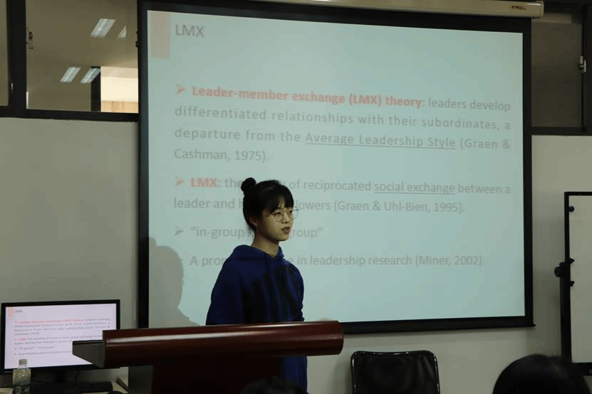 首先,赵地博士分享了“The Antecedents of Leader-member Exchange Differentiation: A Situational Leadership Theory Perspective”一文。通过系统的文献梳理,赵地博士发现现有研究重点关注领导成员交换差异化(Leader-member Exchange Differentiation,LMXD)对个人和团队绩效的影响,而对LMXD前因的探究力度相对不足。在本文中,赵地博士基于情境领导理论重点探讨了员工异质性对于LMXD形成的影响。实证结果表明,团队成员专业能力异质性及自我效能异质性均与LMXD存在显著的正向关系,而团队间竞争程度正向调节专业能力异质性与LMXD之间的正向关系,团队凝聚力则削弱自我效能与LMXD之间的正向关系。在演讲结束之后,公司人力资源资深教授对该论文提出一系列建设性问题,尤其对文章理论阐述部分提出了相关参考意见。学者间关于人力资源相关学术问题的深入交流让在座的师生受益匪浅。