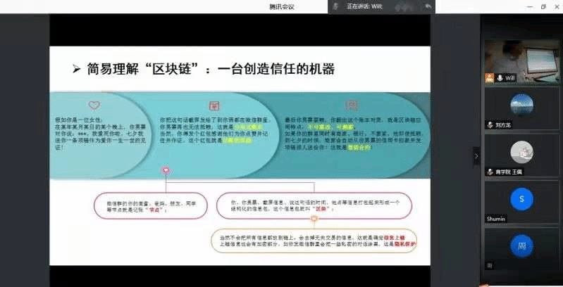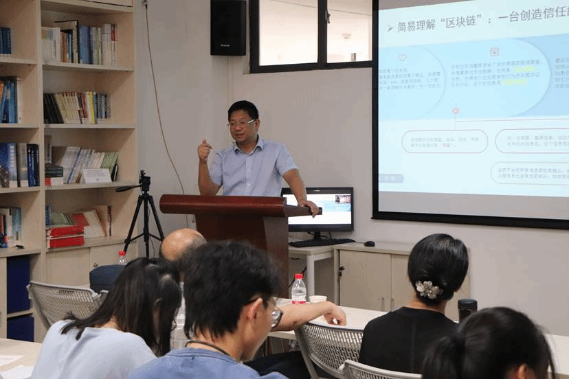 5月27日,商学学术论坛第25期讲座如期在院系楼366会议室举行,本次论坛有幸邀请到中山大学管理公司大数据中心主任韦立坚副教授进行区块链主题分享。本次论坛采用线上、线下同时开展的方式,吸引了数十位老师和员工共同参与,其中10余名教师参与了线上同步会议,bevictor伟德官网副经理曾楚宏教授也亲自莅临本次论坛进行相关工作指导。论坛由研究生办公室主任刘方龙副教授主持。