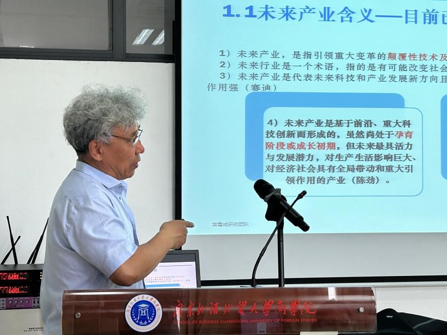 首先,曾楚宏副经理对黄教授的到来表示热烈的欢迎和衷心的感谢。随后,黄教授为我们深入解读了未来产业的含义、特征以及选择。未来产业,是指那些引领重大变革的颠覆性技术及其所创造的新产品、新业态,它可能改变社会和经济各个部门的技术领域。这些产业具有巨大的市场潜力和强大的带动作用,它们与战略性新兴产业既有相同点,也有不同之处。