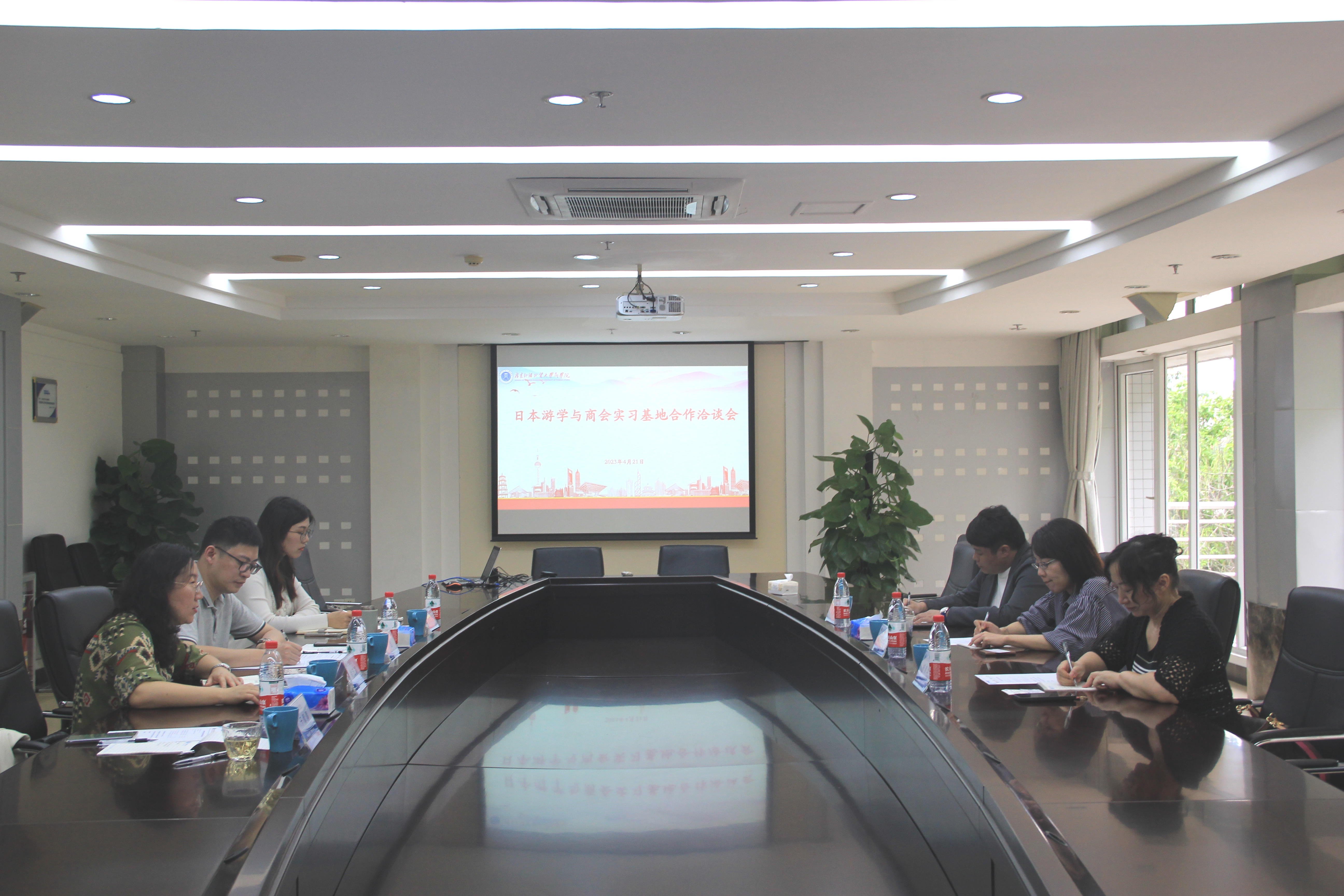 4月21日下午,思维触角日本分部社长宫崎亚纪子,副总经理陈麒、杨美华一行三人来bevictor伟德官网洽谈日本游学与海外实习基地建立事宜。大学国际交流合作部副部长徐艺青,bevictor伟德官网副经理丁浩、国际认证与交流办公室主任刘天娇、MBA教育中心国际事务主管于倩倩参加会谈。