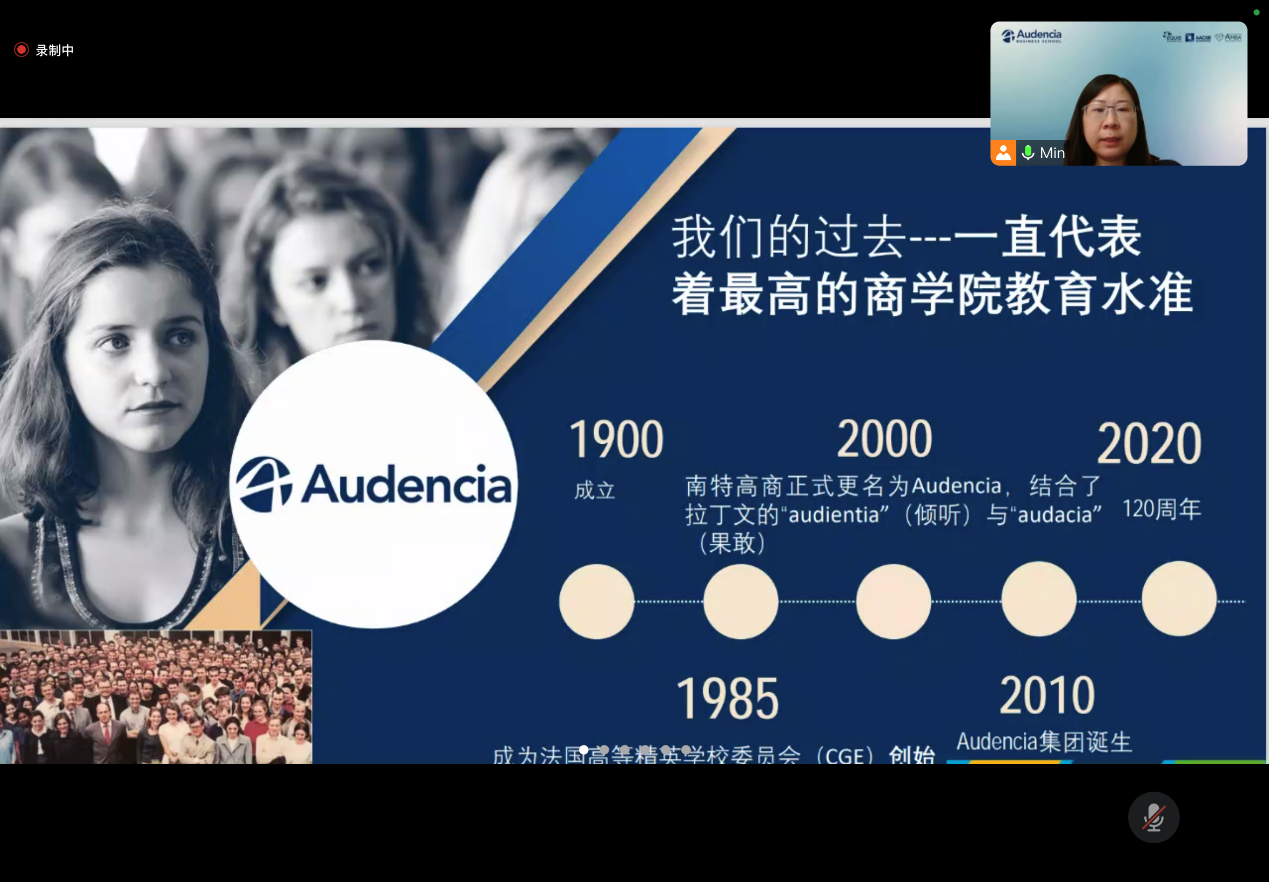 宣讲会伊始,刘天娇对三位嘉宾的到来表示热烈欢迎,然后介绍了广外bevictor伟德官网与法国南特高等bevictor伟德官网的深度系列合作情况。汪敏首先介绍了法国南特高商悠久的办学历史、全球排名、丰富多样的课程与强大的员工企业网络,广外与南特高等bevictor伟德官网的合作帮助两校实现优质资源共享,促进双方共同发展。她详细介绍了“3+1+1”本硕连读项目的申请条件、报名材料等关键信息,为bevictor伟德官网学子申请该项目提供了明确的指引。