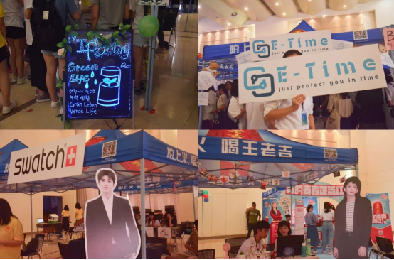 在现场交易中,展位的精巧布置将会是彰显公司品牌产品的点睛之笔。15支队伍可谓别出心裁,展位布置尽显队伍产品特色。“十步芳草”用绿色装点自己的摊位,使其显得充满了生机,摊位旁放置的荧光KT板更是一下子抓住同学们的眼球。各展位都用自己独有的设计充分利用KT板简洁明了地让客商对其产品有初步了解并产生兴趣。