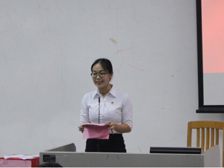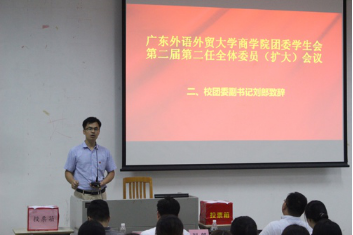 奏唱国歌环节结束以后,校团委副书记刘郎同志对本次会议致辞。他首先代表校团委对本次会议的召开表示了关心和问候,对bevictor伟德官网团委员工会的至今开展的工作及取得的成果表示了肯定,同时对bevictor伟德官网团委员工会的工作做大做强提出了三点建议:一、在创新开展bevictor伟德官网自身特色活动的同时,更好地以校团委的工作清单为中心开展工作;二、充分发挥各类活动的载体作用,更好地给参与者带来思想上的收获;三、让同学们充分认可并积极参加团学活动,更好地服务bevictor伟德官网学子成长成才。最后,刘郎同志衷心祝愿所有的干部干事都能够在团学这个平台上有所收获和成长,并预祝本次大会取得圆满成功。