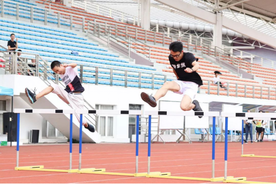 中午飘下微微细雨,但这丝毫不影响运动员们的激情,下午迎来的第一场比赛便是男子110跨栏,运动员们经过中午的休整,精神饱满,斗志昂扬,随着发令枪鸣声,他们冲向眼前的栏杆,眼神中充满坚毅和无畏,势必要跨越这座“高山”。最终梁毅和祝子钏分别位居男子组和女子组榜首。