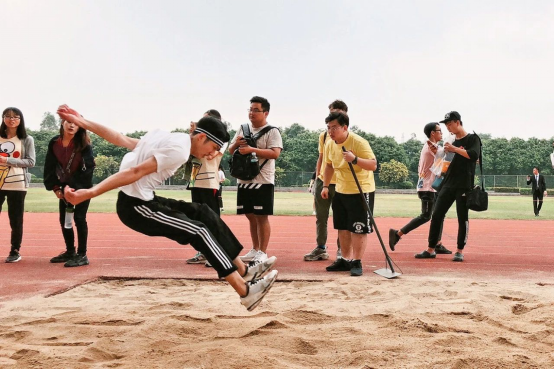 你是否有勇气,挑战全新的自己?在今天的三级跳远赛场上,许多选手在从未接触和不甚熟悉的情况下,一次次助跑加速,一次次勇敢跃起。沙池里留下的,不只是深深浅浅的脚印,更是你们证明自己的印记。在一番紧张激烈的比拼之后由黄达锋和赖锦凤分获男子和女子组冠军。而黄达锋同学,以绝对优势赢得比赛,在随后的采访中,他说道,三级跳远是一个需要长期训练的项目,他自己也在这方面付出了很多努力和时间。而对于赛前的紧张,他认为田径其实是一项很放松但是又不缺竞争力的运动,喜欢田径就要放平心态,因为不可能每次比赛都像预期那样,到赛场上要保持一定的紧张和兴奋,这样才能在比赛中有所发挥。他的坚持让我们钦佩,同时那些勇敢尝试的选手也值得我们喝彩。