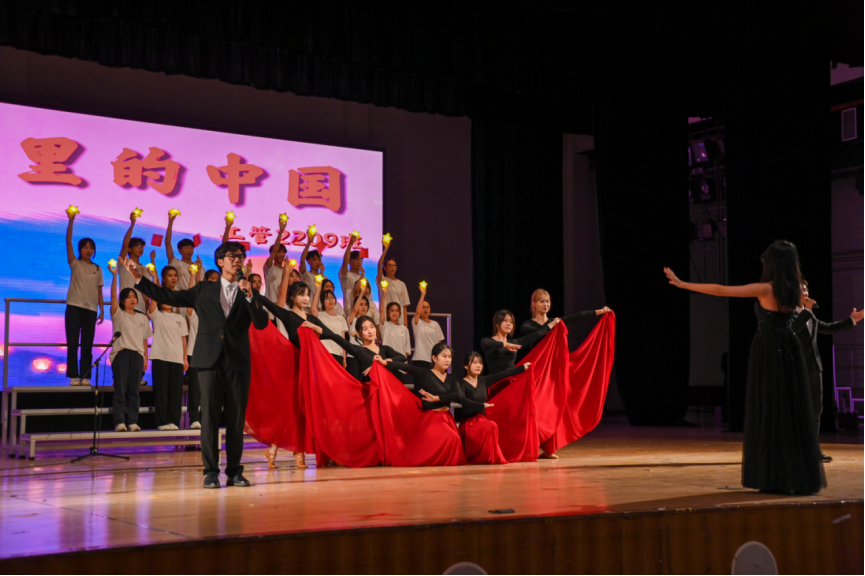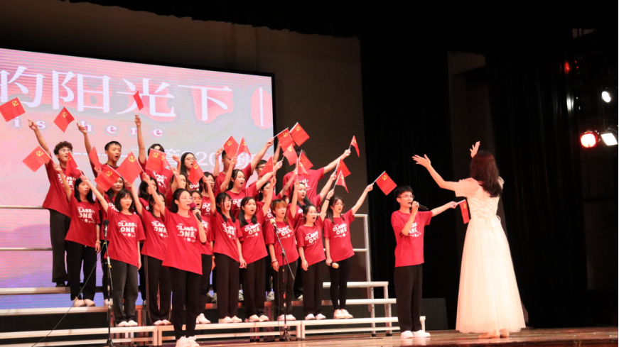 各表演班级的歌声或催人奋进、或宛转悠扬,充分表达了青年学子对党和祖国的无限热爱和深情祝福。