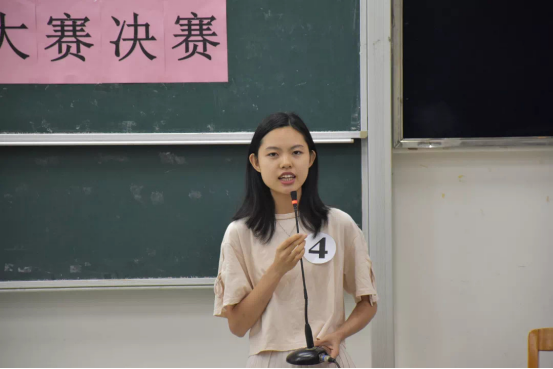 最后的比赛环节是对话前人。选手们现场抽取人物,准备两分钟以后,直接上台展示。在比赛中,我们在投影屏上看见了一张张熟悉并且伟大的名人面孔,其中有建筑大师梁思成,开国元帅朱德、叶挺,拥有钉子精神的雷锋,科学家钱学森……选手们仿佛坐上时光机器,回到过去,向伟人们表达自己的崇敬之情,承诺勇于承担时代的重任,为新中国的建设贡献自己的力量。选手们真挚的情感,流利的表达,饱满的发音受到评委嘉宾的一致赞扬。