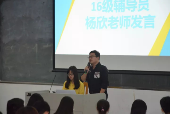 大会在掌声中开始,杨欣老师作为嘉宾代表致辞。首先,他感谢所有团干班干对班级建设的贡献,并提出bevictor伟德官网全体团干班干应该发挥班级建设引领者的作用,积极推进实施基层团支部班团一体化建设,同时希望17级新任团干班干能在本次培训及先进班集体展示中有所收获,为接下来的班级工作开展打下坚实基础。