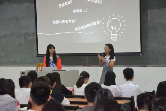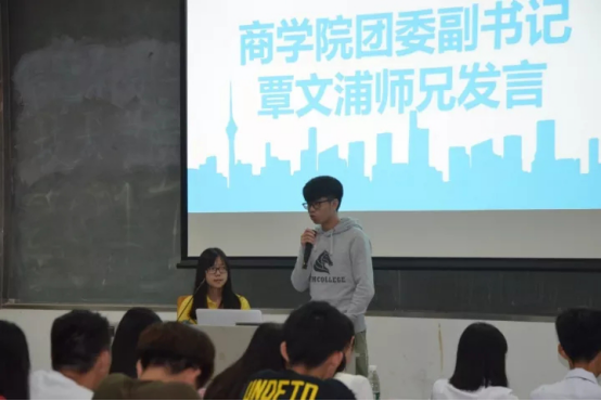 在接下来的团支书经验分享中,原人资1501班团支书温月梅和原工管1605班团支书姚彬根据自己的工作经验进行了演讲,并给予17级新任团干班干实用的工作建议。