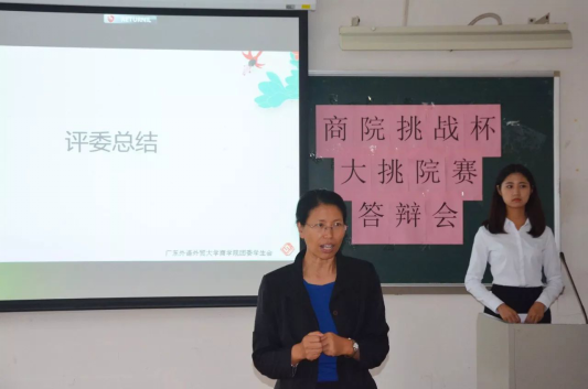 不知不觉,答辩会接近尾声,最后,王秀芝老师对本次答辩会做出点评。王秀芝老师首先肯定了本次参赛队伍的选题方向,因为参赛队伍的选题大体上都结合了时代背景。王秀芝老师还表示,选手们通过本次挑战杯比赛,从大的方面来说,能够做到为院,为校争光,而从个人来说,可以发掘自己未来的发展方向。与此同时,老师还给参赛队伍提出建议:首先,一定要明确研究的问题导向。其次,论文题目一定要精确表达内容,提出核心,抓住评委眼球,而对于论文打印排版等细节问题也要进一步地去优化。