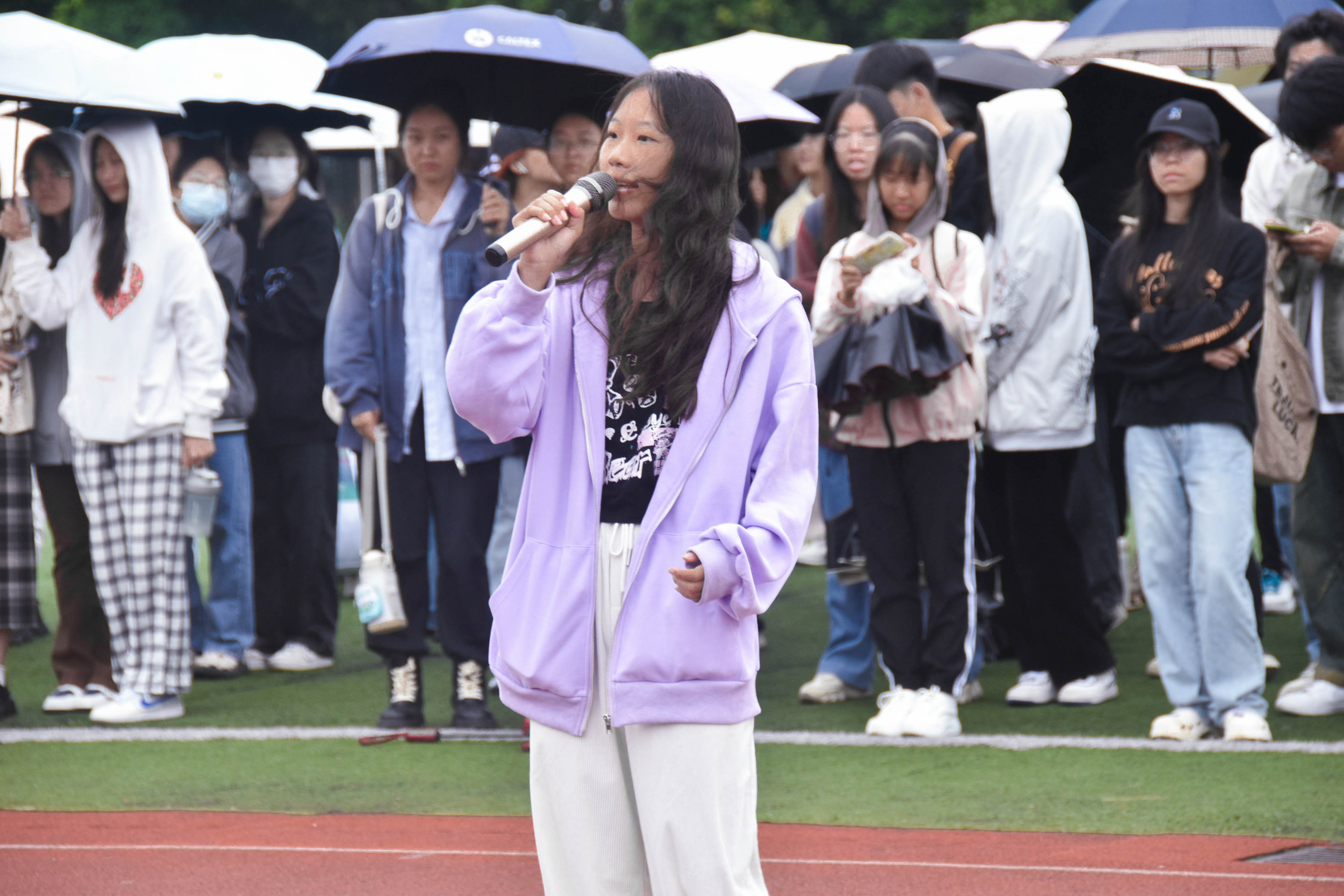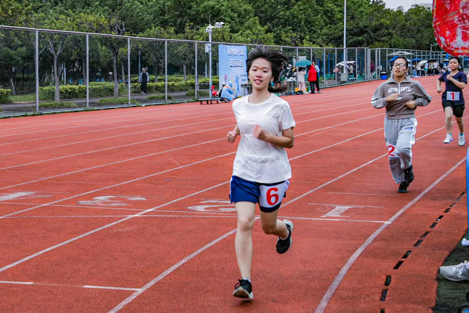 哨声一响,同学们使出浑身解数,冲向终点。然而,中长跑的较量不是在一分一毫的差距,而是比拼谁更能坚持到底,选手要面临的不仅是身体上的考验,更是心理上的考验。在400米的比赛场上,林威良和梁楚珩分别斩获男女子组的冠军。其中刘潇毅先后摘得男子800米和1500米的冠军;吴士博获得女子组800米冠军,卢梓彤获得1500米冠军。