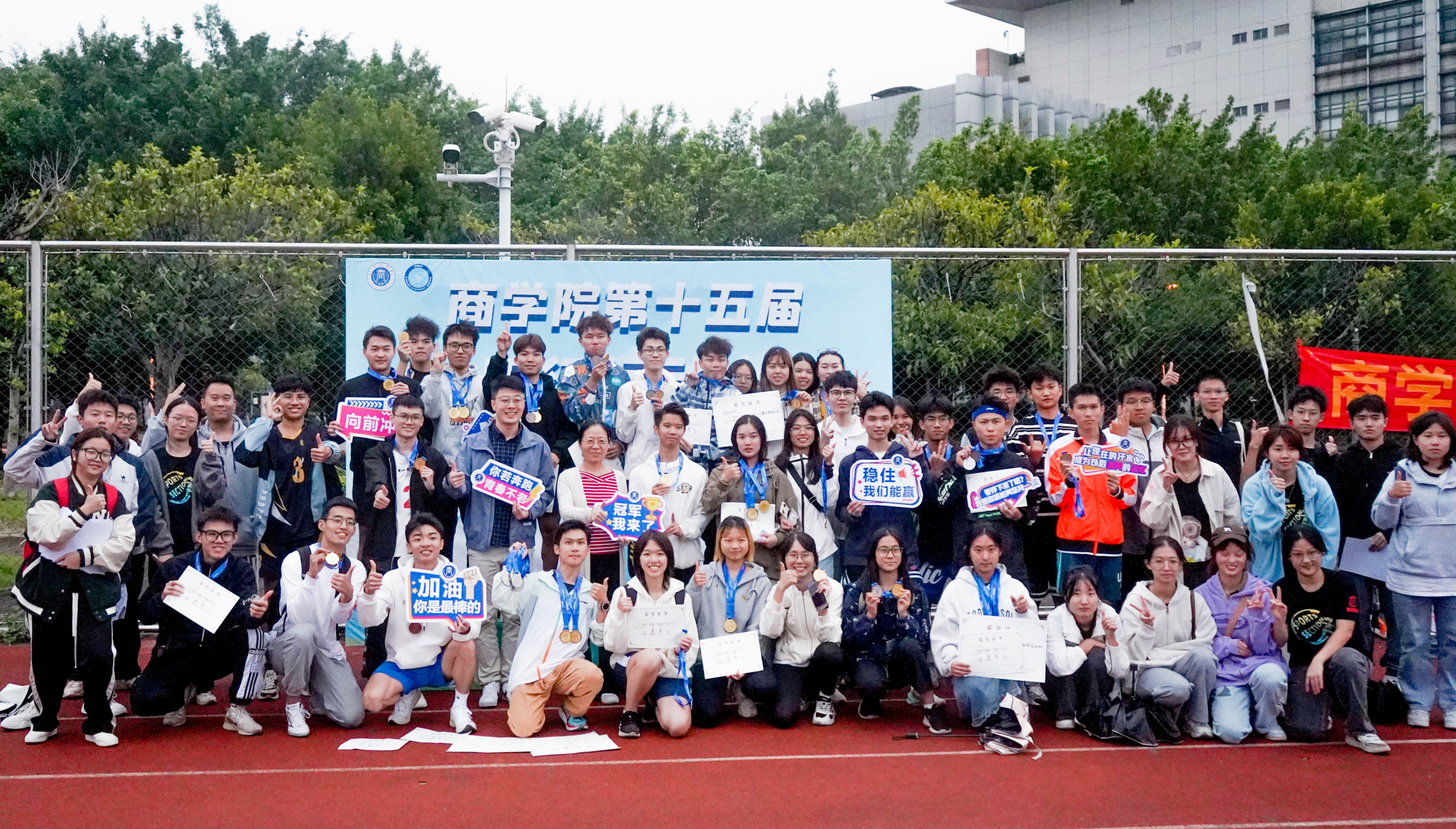 少年负壮气,奋烈自有时。年少梦想赤诚可贵,拼尽全力,不论成败永远可贵。院运会不仅展示了同学们的青春风采,还考验了同学们的体能与心理素质。它锻炼的是体力,弘扬的是个性和青春活力,收获的是良好的精神风貌。赛场上的一次次拼搏,赛场边的一次次呐喊,传递着“友谊第一,比赛第二”的理念。又是秋天,我们相聚在操场;又是操场,我们相聚在终点。期待我们明年再次顶峰相见!