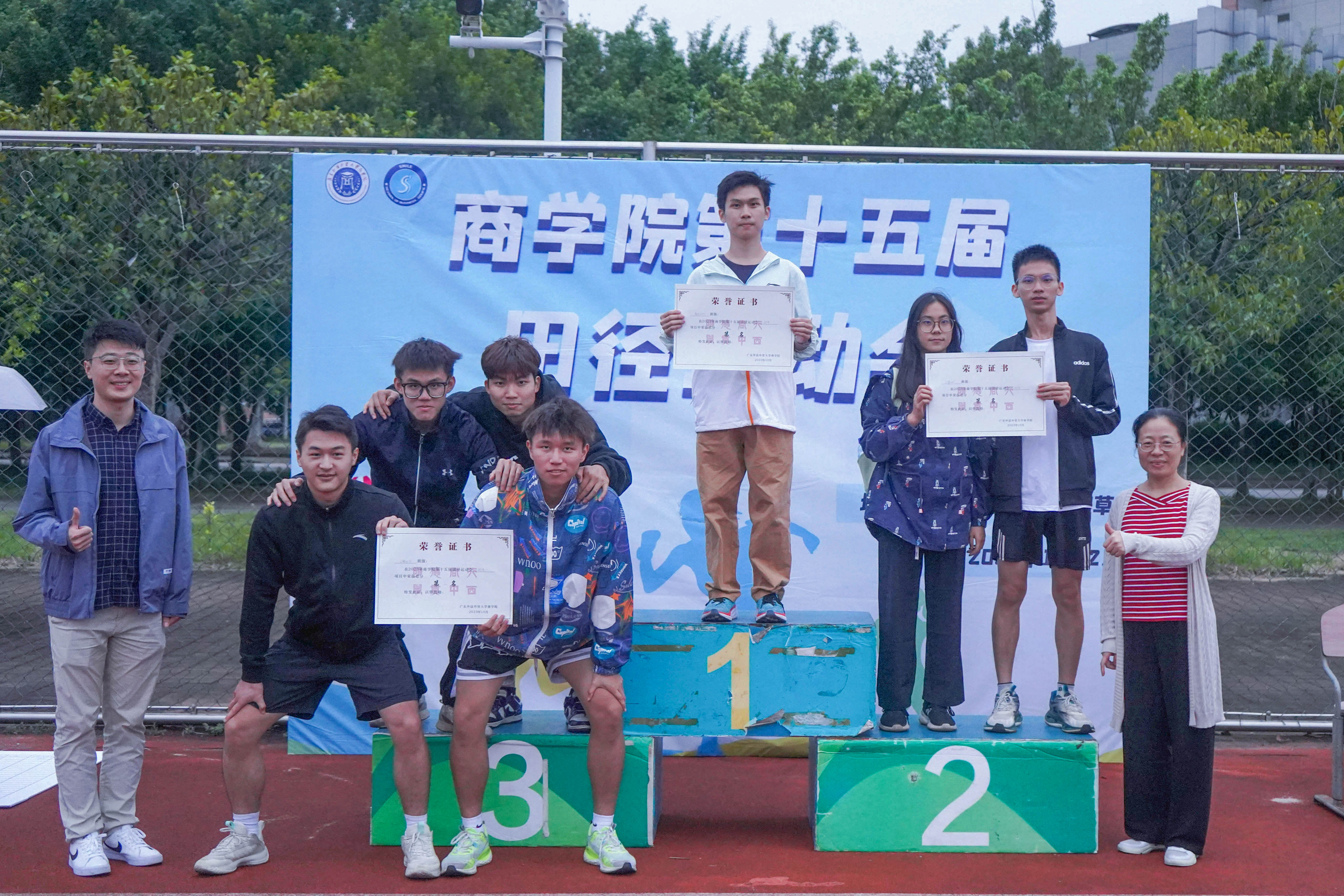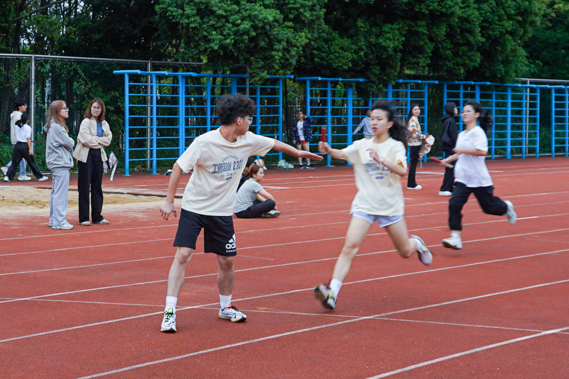 一根小小接力棒,连接是团结和友爱,传递是勇气和力量,演绎是奋斗和拼搏。伴着同学们的热烈欢呼声和加油声,激烈的竞争落下帷幕。最终,工管2103班夺得男子组4×100米赛跑冠军,商创2301班摘得女子组4×100米赛跑团体赛桂冠,国创2101班取得男女混合6×200米赛跑第一名的好成绩。
