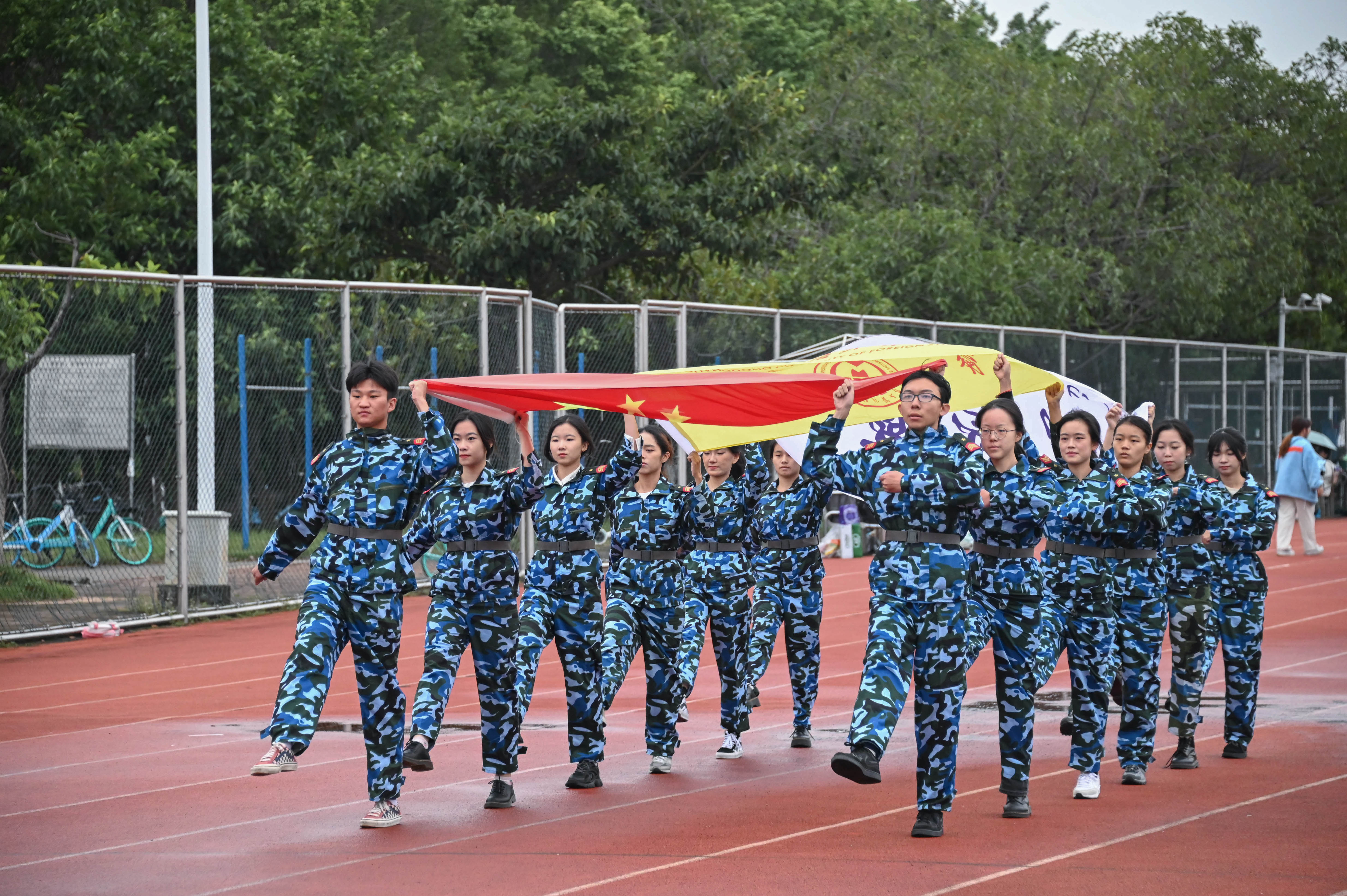 金风送秋,天高气爽。旗队迈着整齐划一的步伐,以端正挺拔的身姿进场,护送国旗到达升旗台。在庄严的国歌声中,bevictor伟德官网第十五届田径运动会开幕式拉开帷幕。