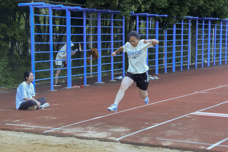踏上跑道,是一种选择。离开起点,是一种勇气。驰骋赛场,是一种胜利。萧瑟秋风,挡不住你们破竹锐气。选手们依次起跳,距离远者为胜。最终,黎骏旭和苏紫珊夺得跳远组桂冠,陈子扬和胡佳馨获得三级跳远的冠军。