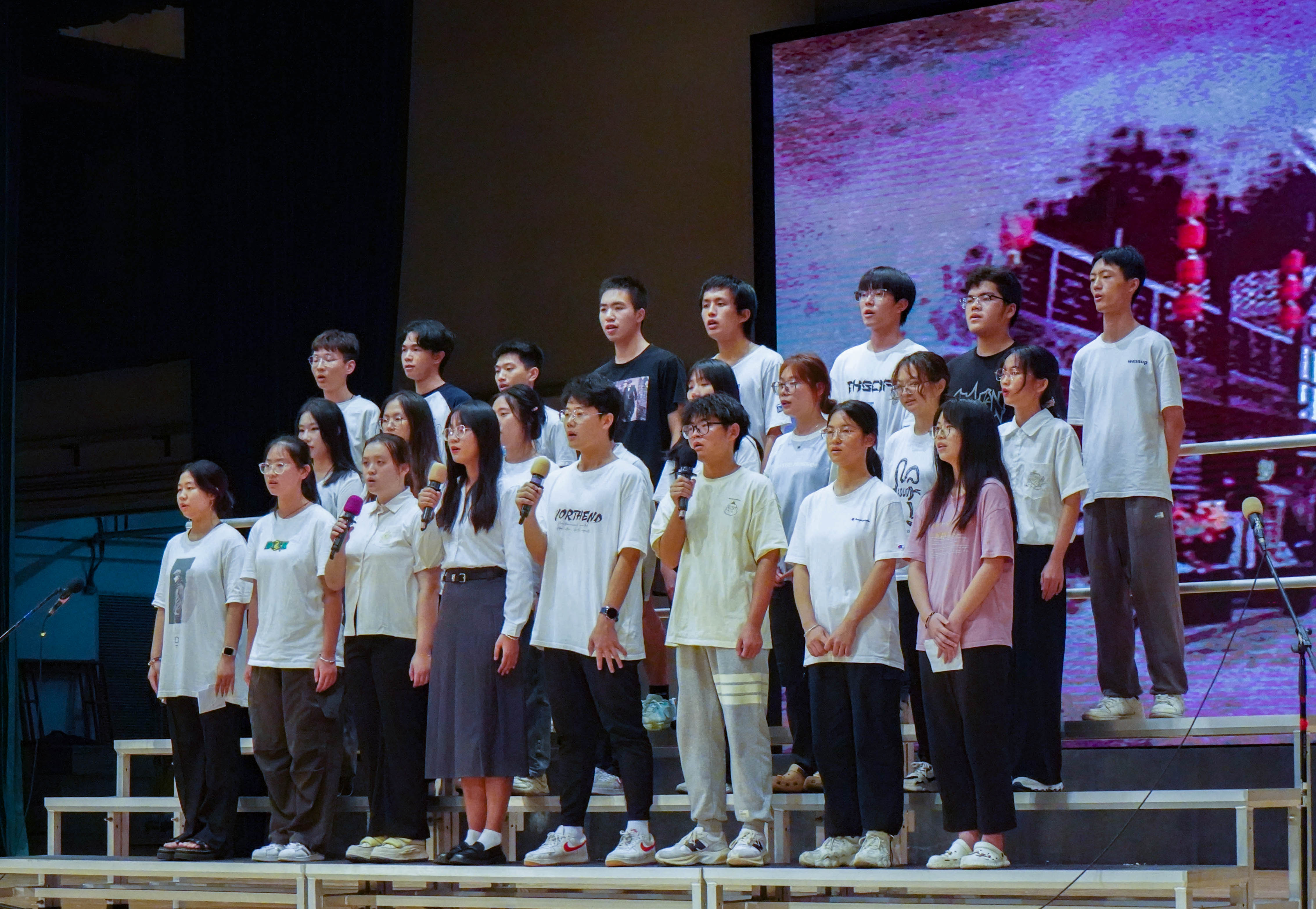 第一个登场的是工管2308班,他们带来歌曲《我爱你中国》。同学们手执红烛,字字句句里表达着对祖国的无限热爱,同学们整齐划一的歌声流露出作为中华儿女的骄傲与自豪,激励着​bevictor伟德官网青年为祖国繁荣发展接续奋斗。