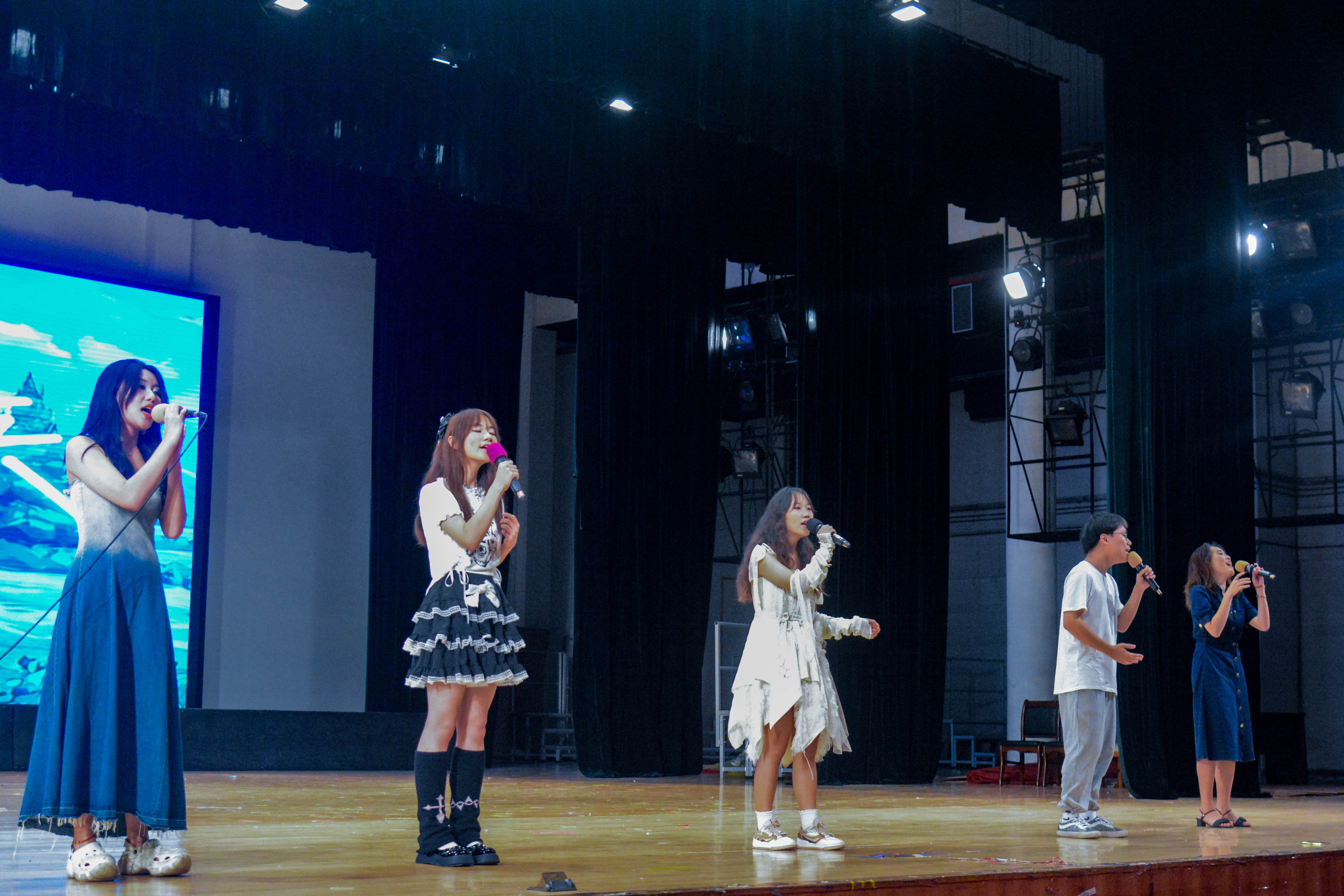 表演过后,精彩继续。电商2301班带来歌曲《从前慢》,从前车马很慢,时空穿梭感在心底产生,昏暗的灯光,悠扬的歌声,蕴藏的是无尽的韵味。