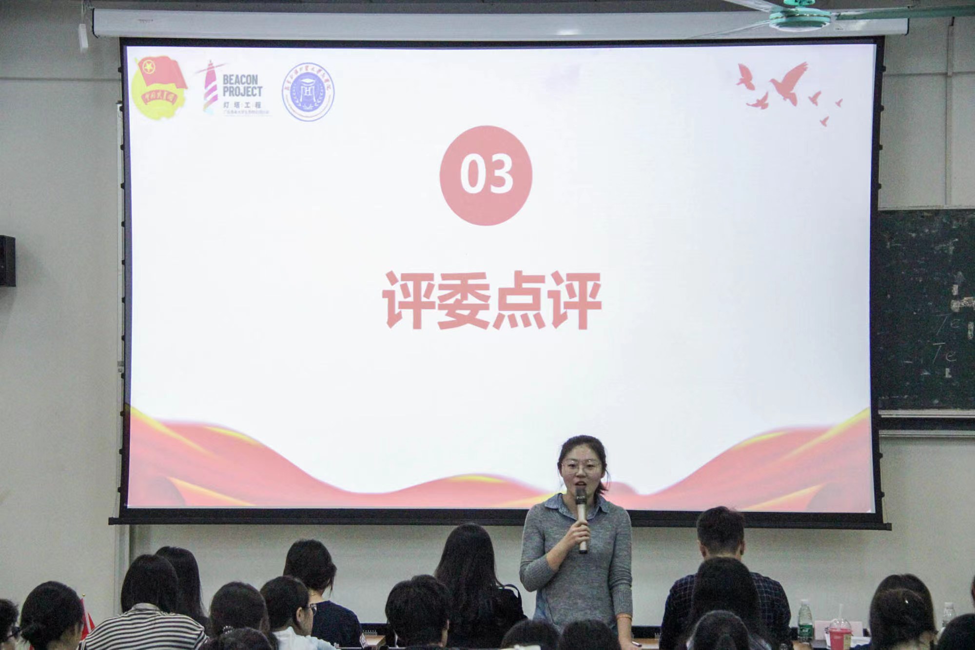 各团支部展示结束后,李新璐对本次团日活动作出总结点评。她肯定了各团支部团日活动形式的多样性,并将理论知识与实践相结合,富有创新性,肯定了同学们积极昂扬的精神面貌,并对团日活动的策划、团日活动策划书的撰写、团日活动展示等提出改进建议。李新璐鼓励同学们要将理论知识与实践相结合,继续发扬团结协作精神,积极参与各种意义深刻的学习活动,促进团支部成员共同进步、共同成长,为祖国的发展贡献属于自己的青年力量。