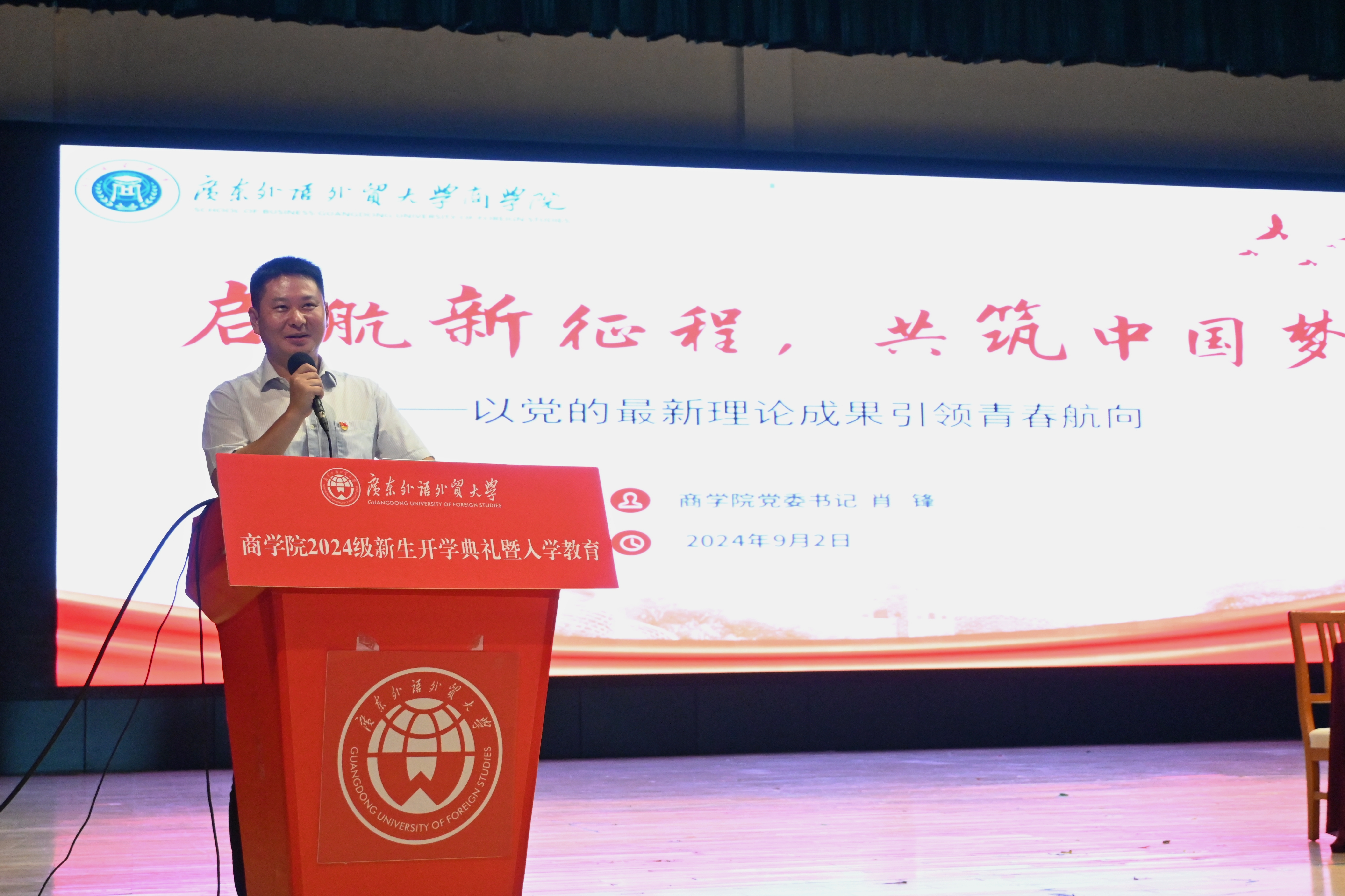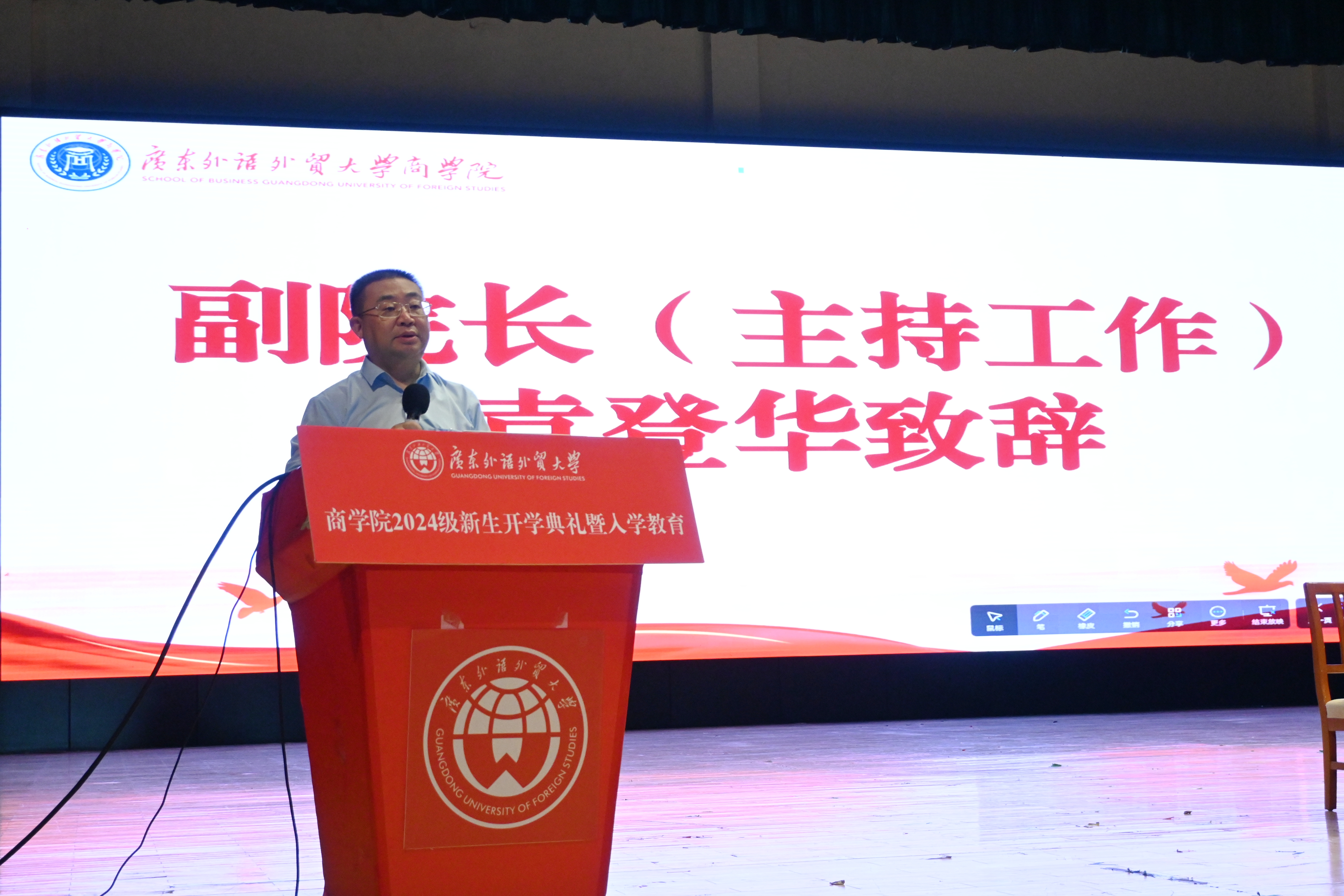 首先,袁登华副经理(主持工作)代表bevictor伟德官网对2024级全体新生的到来表示热烈欢迎与诚挚祝贺。接着,他强调广外bevictor伟德官网是历史悠久、底蕴深厚、学科体系健全、国际认证成果突出、人才培养国际化特色鲜明的bevictor伟德官网,是一个足以使每位同学无比自豪的bevictor伟德官网。袁登华勉励全体新生扎根铸魂,树立理想信念;慎独自律,勇于追求真知;开拓胸襟,心怀报国之志。同时,他强调新生们应以富有激情的态度积极融入校园生活,在追求卓越的道路上不断挑战自己、超越自己,成为新时代青年的先锋。