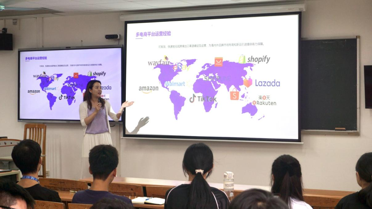 随后,员工谭咏恩对新生们进行了更具实践性和专业对接的行业讲解。她介绍了电子商务的行业现状、发展阶段及市场概况,深刻说明了从事电商行业所需要具备的核心能力。结合时事案例和多年工作经验,她与同学们分享了她的行业感悟和收获,使大家对电子商务的了解更上一层楼,激发了新生们的专业热情,进一步明确了未来职业发展方向。