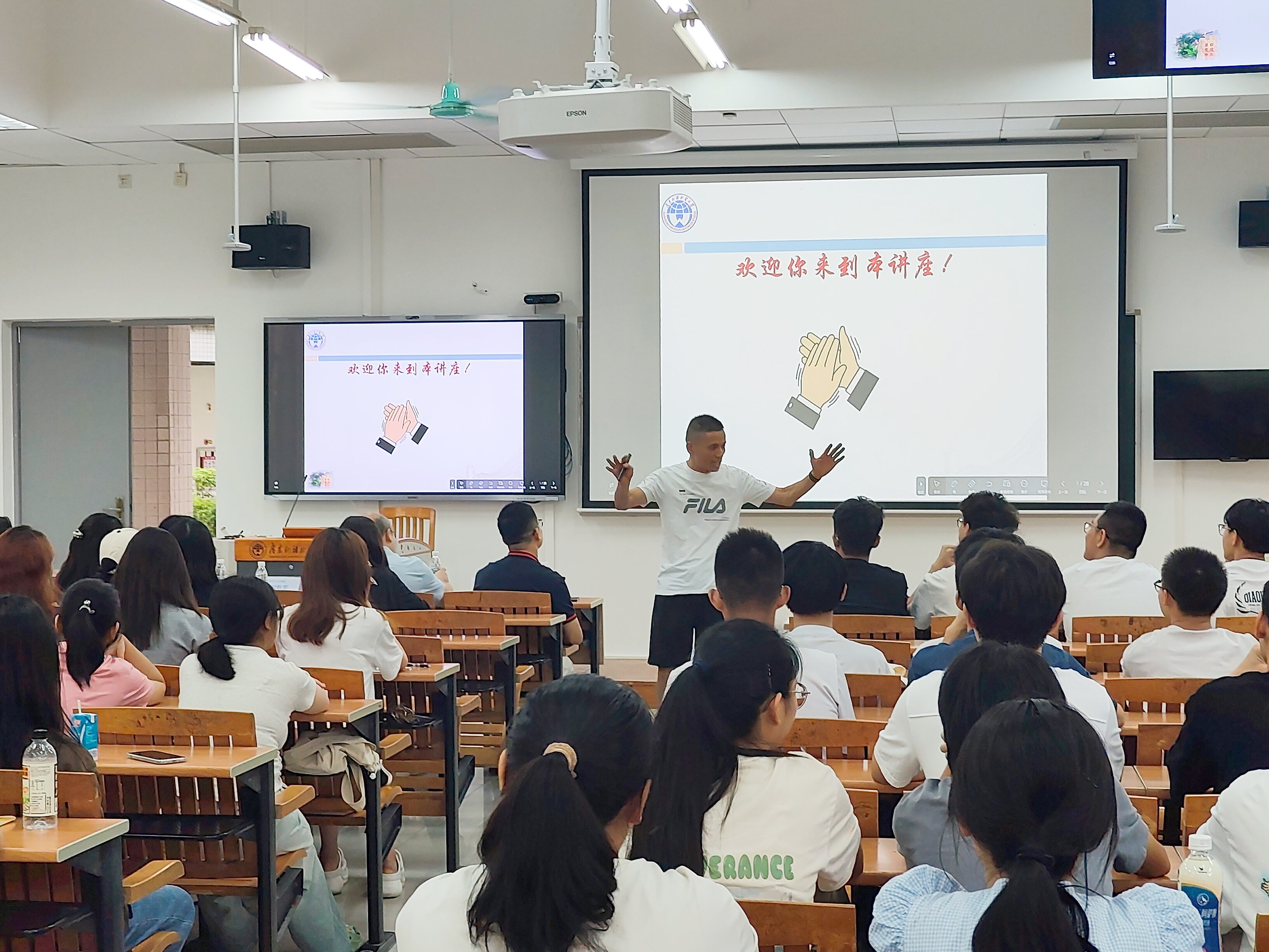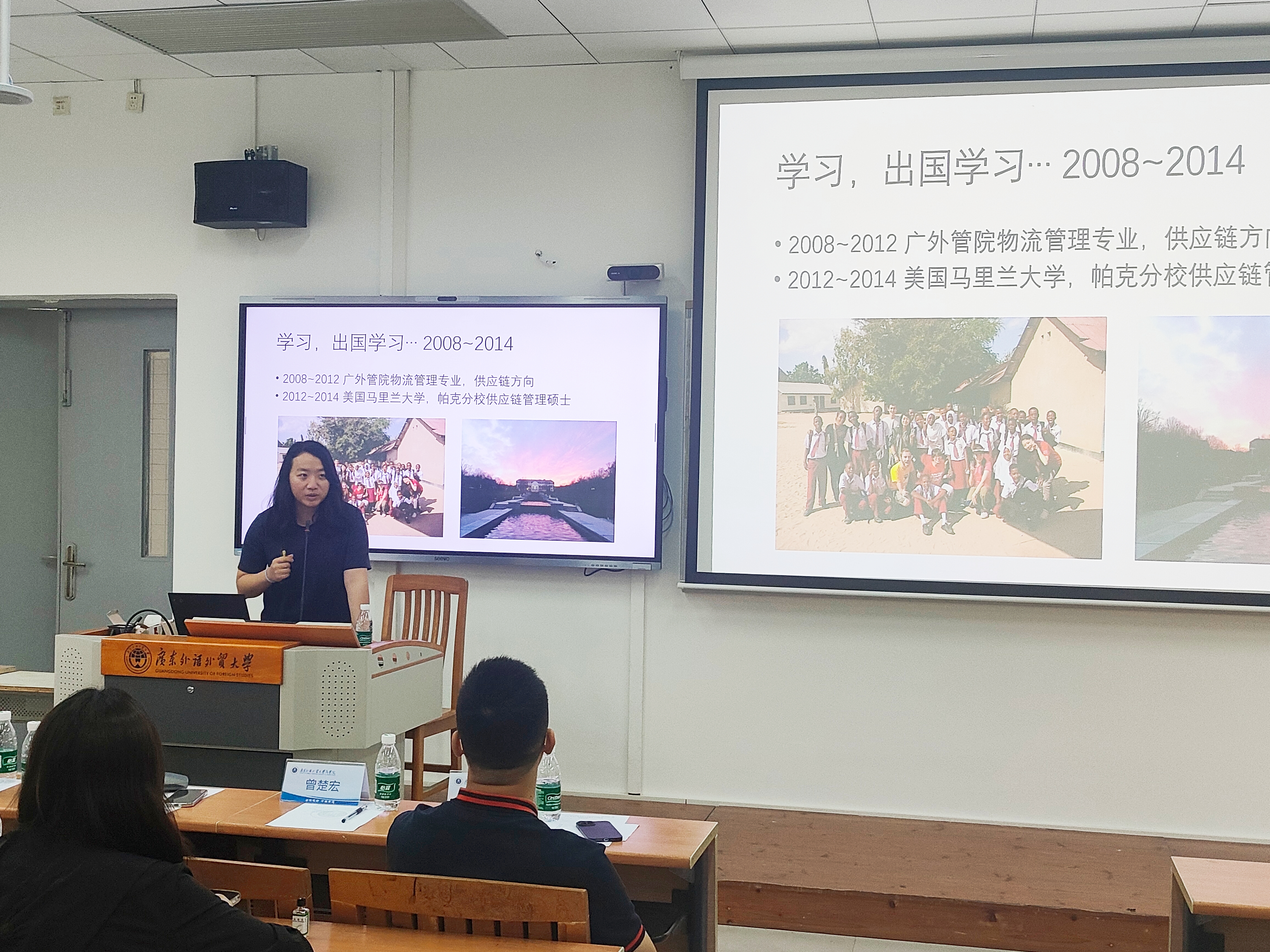 在提问环节,同学们踊跃举手,针对未来考研、留学、供应链管理专业前景以及专业课程等方面与马颖员工进行了深入探讨,现场气氛热烈融洽。同学们对本次讲座表示积极认可,并对未来发展充满动力与期望。