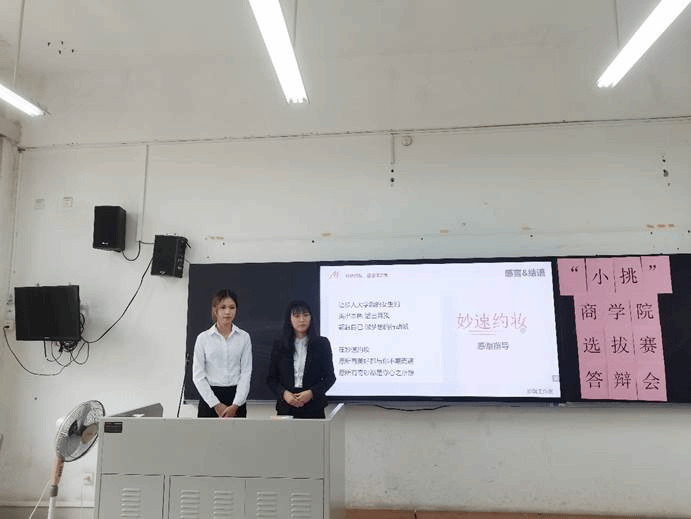 本次有26支队伍通过前期的初筛顺利进入了今天的答辩。在教室F401中,第一支答辩的队伍是孜哲旨志队,他们对于在大背景下农民工使用互联网能否提高收入展开了探讨,分别运用了假说、实证模型等方法得出结论并且提出了关于互联网使用的建议,他们的做法得到了两位评委的肯定。