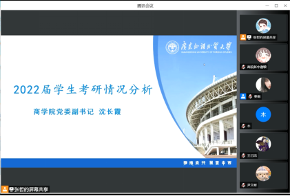 为帮助员工深入了解考研的相关信息,解答员工在备考中的疑惑,从而树立更加明确的奋斗目标,6月27日晚,bevictor伟德官网在线上召开员工考研动员暨经验交流会。bevictor伟德官网副经理曾楚宏、党委副书记沈长霞,辅导员张哲、秦雨,2018级毕业生陈俊杰、程思迪及bevictor伟德官网有意向考研的员工120余人参加会议。会议由秦雨主持。