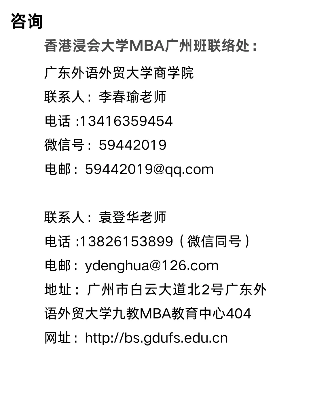 香港浸会大学MBA(工商管理硕士)广州班2025年招生简章