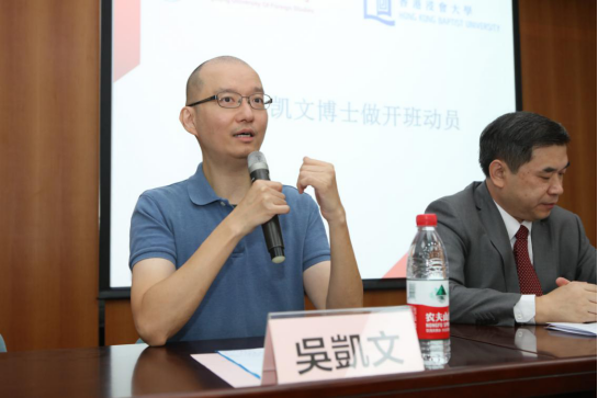 其次,吴凯文博士就开班动员发表了讲话,他多次提到“讲”的重要性,鼓励学员们多思、多讲,培养自身逻辑性,促进思想的碰撞。他期望学员们充分利用手头资源和宝贵时光,为锻炼自身思维方式、管理能力,培养企业家精神而不断努力。