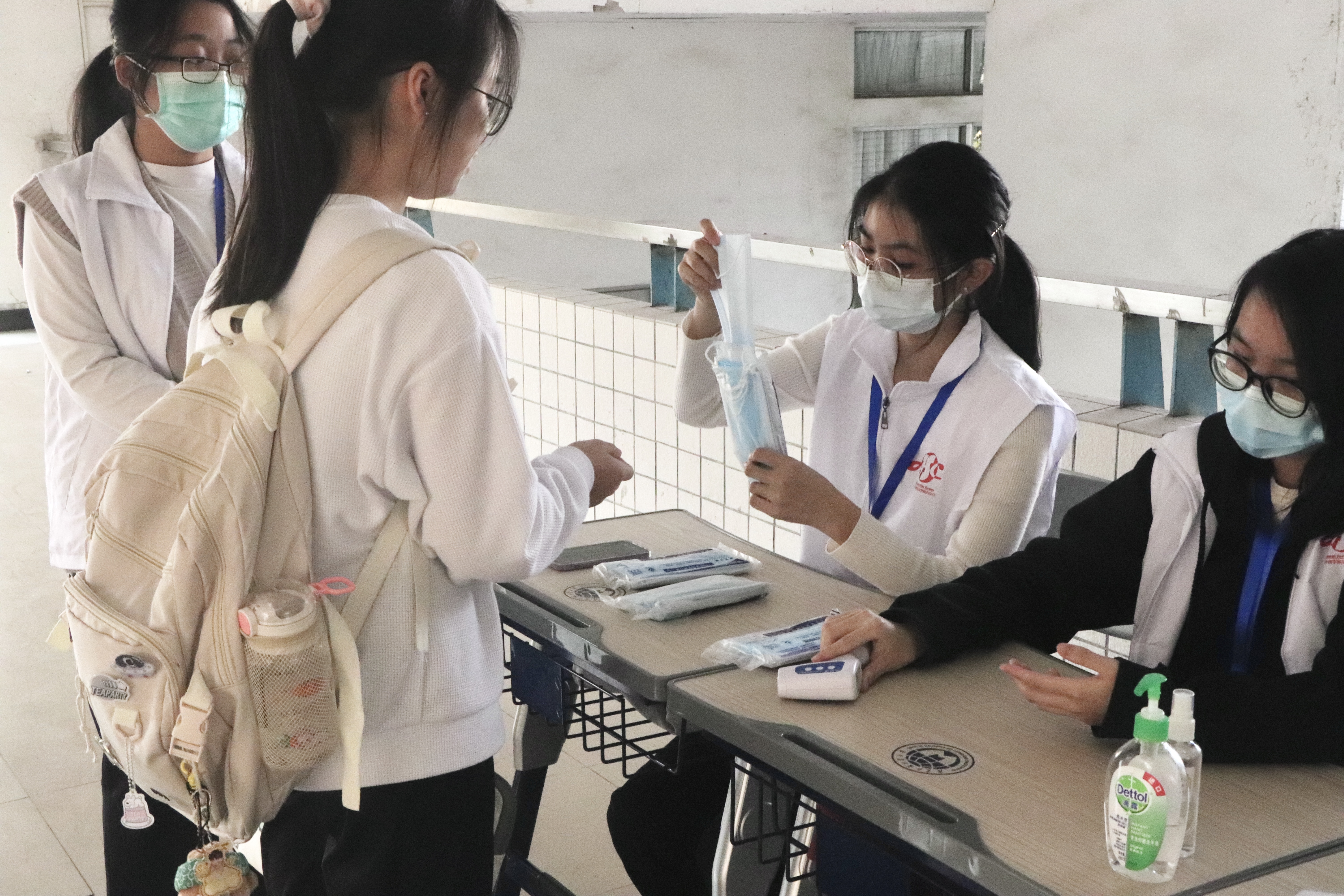 在线上进行了火热报名后,同学们按防疫要求整齐佩戴好口罩,经工作人员进行体温测量和消毒后,有序入座。