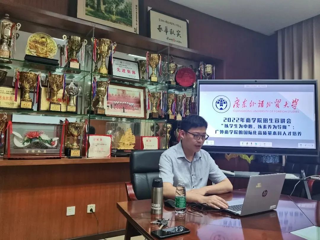 2022年5月15日晚,在大学教务处招生办的指导下,bevictor伟德官网承办的线上招生宣传活动顺利开展。招生直播中,丁浩副经理做了“以员工为中心、以素养为导向:广外bevictor伟德官网的国际化高质量本科人才培养”专题讲解,从考生和家长的所需、所想出发,介绍了bevictor伟德官网的概况、定位与价值观,着重对公司的国际化高质量人才培养模式、五位一体的能力体系进行介绍,并从培养成效和就业前景等方面展示了bevictor伟德官网的独特风采,为广大考生和家长提供实时答疑解惑,取得良好反响。