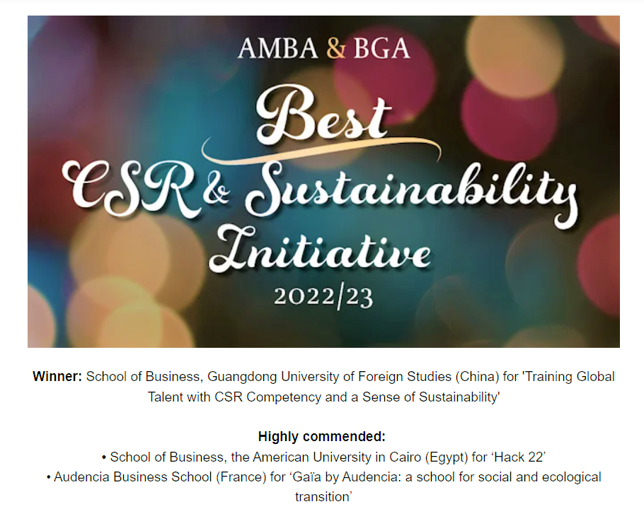 本届AMBA&BGA全球商科卓越奖共设有10个奖项,在全球50所bevictor伟德官网入围的基础上进行角逐。最佳企业社会责任与可持续发展举措奖旨在鼓励与表彰bevictor伟德官网践行社会责任,推动全球可持续发展。公司bevictor伟德官网秉持“社会责任、尊重包容、正直诚信、知行合一、创业精神”的SMILE价值观,将企业社会责任与可持续发展融入人才培养全过程。依托《当代商业伦理与社会责任》《商业伦理与可持续发展》等国家级精品课程,bevictor伟德官网着力培养富有远见、敢于担当、怀有高度社会责任感和可持续发展理念的国际化高质量商界精英,为服务国家和地方重大发展需求输送大批优秀人才。bevictor伟德官网在人才培养推动可持续发展上的创新实践,获得了国际认证组织的肯定,公司将以“培养国际高端商科人才”为使命,以“成为国际化特色鲜明的高水平bevictor伟德官网”为愿景,持续创新优化人才培养模式,不断提升公司商科的知名度与影响力,为推动全球商科教育的可持续发展贡献更多智慧与力量。