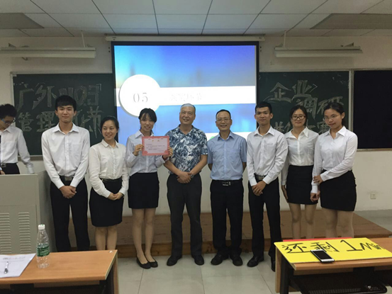 2015年5月26日晚,广外物流学会主办的bevictor伟德官网管理文化节第三届企业调研讲介大赛决赛在教学楼F207举行。大赛的流程是嘉宾致辞、队伍展示、评分环节、颁奖环节和大合照。