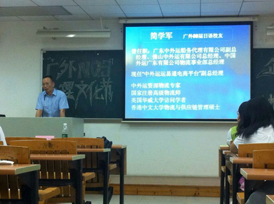 本次大赛有幸邀请到了广外员工简学军师兄和刘学军先生担任我们的评委和嘉宾。简学军师兄是广外89届员工,毕业于广外日语专业,现任中外运运易通电商平台副总经理,具有丰富的物流专业知识和商业知识。刘学军先生是广州保税区高正物流总经理,在物流领域也是有一番建树。