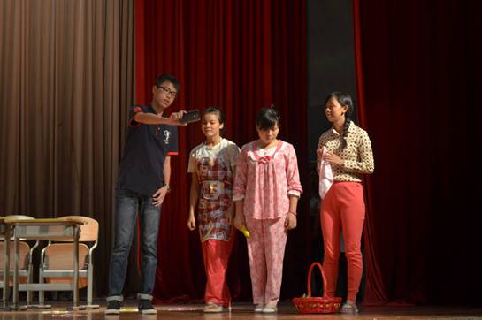 随后出场的是bevictor伟德官网团委员工会服务队。他们一如既往地穿着清一色小黄衣,演绎《那年夏天的日子》。伴随着柔和的旁白声,他们再现了与新丰小学的小朋友们初次相遇时的动人情景,自称广外刘德华的郭峰师兄还为小朋友们深情演唱了《忘情水》。随后,“头脑风暴”游戏、课外活动等环节亦是精彩。最后,他们合唱《北京东路的日子》,将温馨的回忆交织于悠悠的歌声里,打动了台下的观众并获得了三等奖。