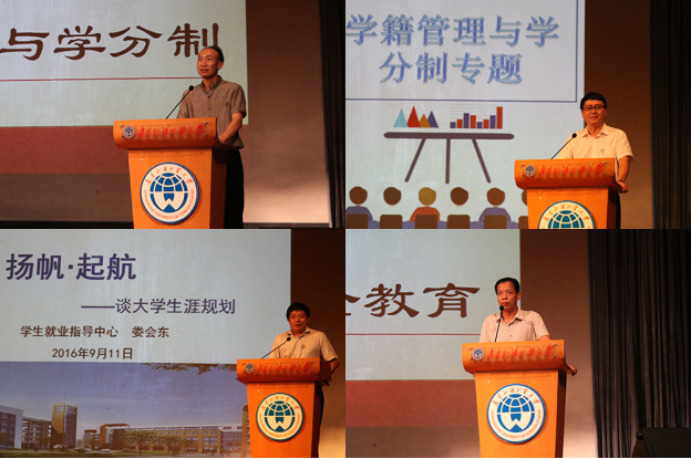 新生教育大会上各位领导及老师为同学仔细地讲解