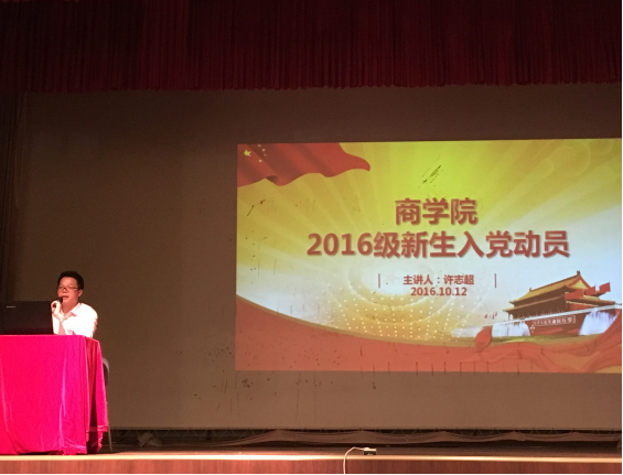 书记党课由商公司党委书记许志超主讲。许志超围绕“青年员工为什么要入党”为主题展开发言。他开篇便以激昂的言语列举中国共产党成立以来的辉煌成就,强调党的光辉历史与党的精神气对青年人的吸引与激励作用,引发同学们对入党动机的深思并获得在场同学的阵阵掌声。随后他围绕新时期入党工作的新形势、党中央反腐的力度和决心、青年员工的选择三个重点展开论述。而后许志超以诙谐轻松的言语,讲述自己大学入党时的亲身经历,并以此为切入点告诉在场学子,面对当前的国内外政治形势,应坚定爱国爱党信念,自觉承担历史使命,为中国梦而努力奋斗,为中华民族书写新篇章贡献自己的力量。话语间表现出他对充满活力与斗志的青少年学子寄予的深切希望,同时他深入浅出的发言与生动的例子也赢得同学们的热烈掌声。