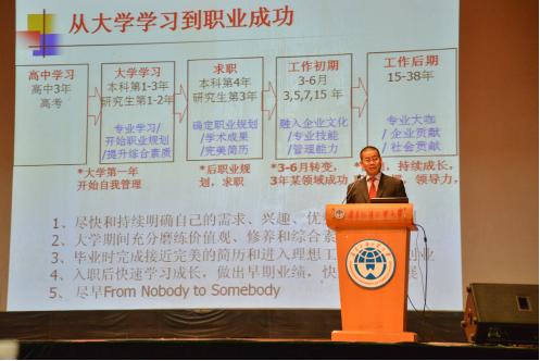 在谈到大学期间应如何提升综合素质时,陈东锋就“如何发现自身才干”“提高综合能力”“加强自我管理和培养良好习惯”等方面提出了具体实用的方法论。“大学期间,同学们应塑造正确的价值观;提升长干、能力;设定明确的目标;进行有效的自我管理。”从大学学习到职业成功,他勉励同学们“每天进步一点点,从现在出发,铺垫职业发展星光大道。”