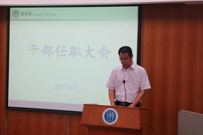 9月7日下午,公司在北校区第九教学楼403会议室召开干部任职大会。副董事长焦方太,组织部部长方迎生、院领导班子成员和教职工代表参加了会议。会议由经理朱文忠主持。