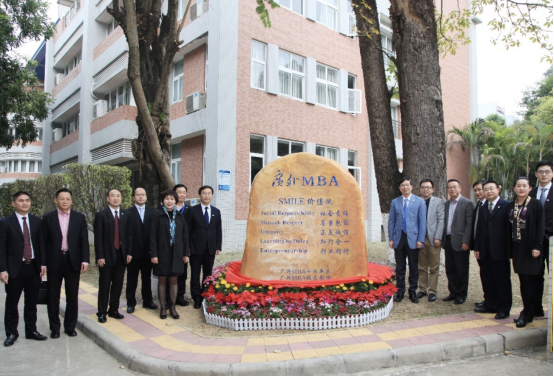 由广外bevictor伟德官网MBA员工会和MBA联合会共同主办的广外MBA十周年“SMILE之夜”于2017年12月23日隆重举行。员工为了表达对“SMILE”价值观的认同和坚守,在广外MBA十周年之际捐赠了“SMILE”石,当日下午在MBA教育中心举行了揭幕仪式。何传添副董事长在揭幕仪式致词中感谢MBA员工的辛勤付出和捐赠。他说,“SMILE”石揭幕具有象征意义,意味着我们的精神依归和价值坚守。他希望大家秉承“明德尚行,学贯中西”的校训,在MBA专业教育中渗透人格教育和人文精神,追求美德与至善,推崇行动与实践,培养具有全球视野和东方智慧的国际化管理人才。