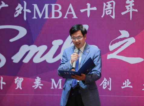 原MBA中心主任孙建军感叹时光飞快,十年弹指一挥间。他说,选择MBA,其实是选择了一种修行,这种修行只有开始没有结束。他认为,不论时光变换,不论我们在哪里工作,都应该坚信四句话:心中有忠诚,肩上有担当,眼中有世界,手边有细节。所有的工作需要我们用心、用情、用爱把它做好,相信所有的经历都会变成我们自己的财富,所有的付出也必将会以意想不到的方式回馈我们。他衷心祝愿广外MBA越办越好。