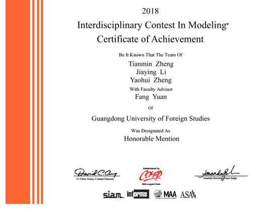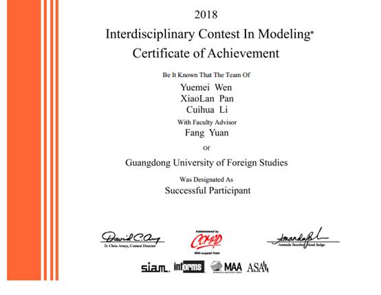 附:2018美国老员工数学建模大赛广外bevictor伟德官网获奖情况一览表: