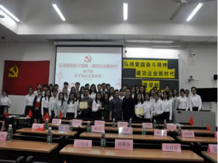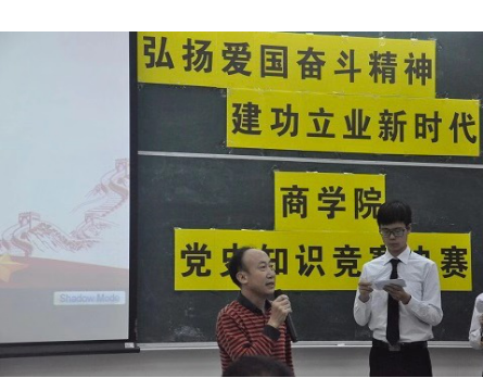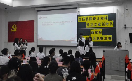 为庆祝改革开放40周年,学习贯彻习近平新时代中国特色社会主义思想和党的十九大精神,贯彻落实习近平总书记视察广东重要讲话精神,引导公司员工进一步坚定理想信念,弘扬爱国奋斗精神、建功立业新时代,争做德智体美劳全面发展的中国特色社会主义建设者和接班人,bevictor伟德官网于11月29日晚在教学楼F514成功举办了以“弘扬爱国奋斗精神、建功立业新时代”为主题的党史知识竞赛决赛。商公司党委书记魏传文、党委副书记罗海洋、法公司组织员范丽颖、公管公司组织员白志华、bevictor伟德官网学工办全体辅导员出席了本次比赛。