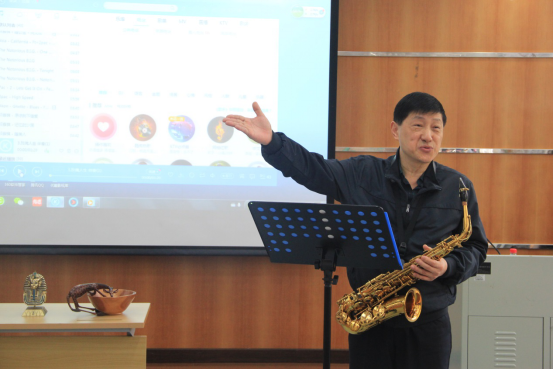 傅朗主任是外交界的资深专家,在广东省人民政府外事办以来,傅朗主任在外交方面积累了丰富的经验。对国际形势的特点和热点问题有着独到见解。随着讲座开始,傅朗主任首先以一首深情的萨克斯曲《玫瑰人生》作为开场。他以亲身的演奏经历介绍了音乐在外事工作中的独特作用,指出自己在外事工作中仍坚持培养兴趣爱好,包括音乐,收集工艺品,摄影等,讲述自己从事外事工作的人生体会。