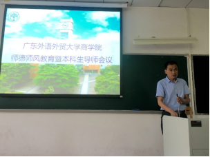 魏传文书记首先强调公司教师应自觉加强师德修养,严格遵守师德规范,坚持以德立身、以德立学、以德施教、以德育德,在师德师风建设过程中要规范言行,同时要注意规范上课内容,重视教材尤其是境外原版教材的使用,全面防范意识形态风险,规范教学秩序。