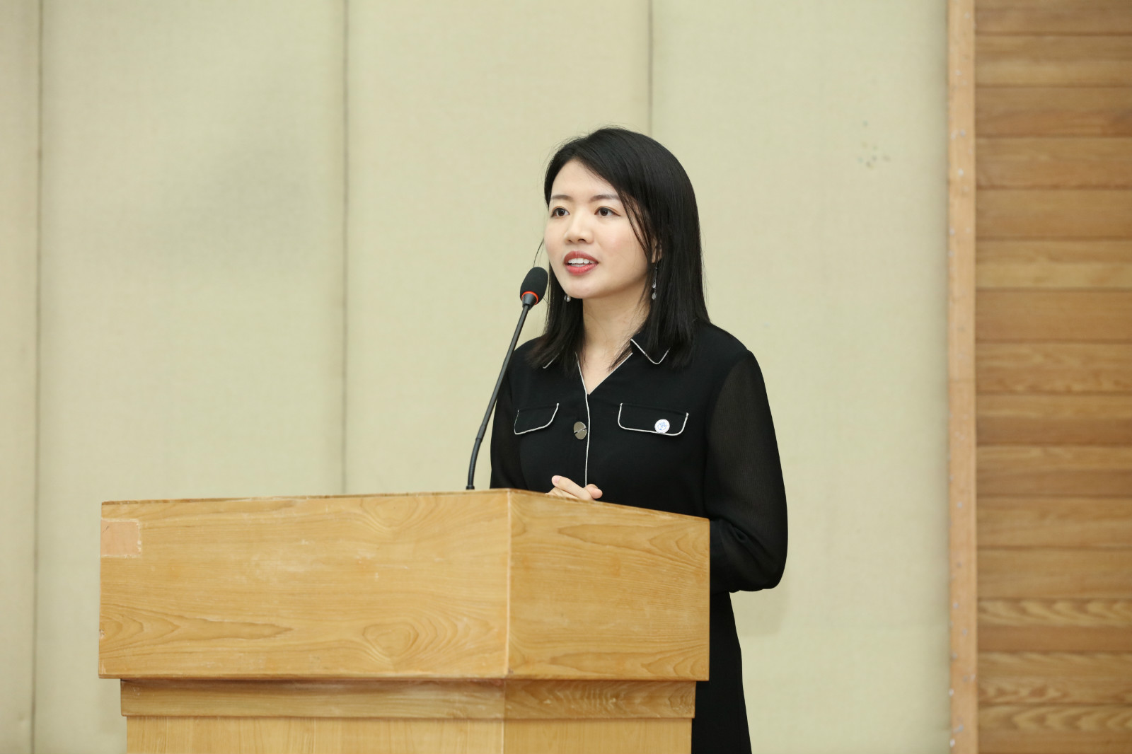 接着,新生代表周子瑜同学分享了当初报考广外MBA的初衷和想法以及对广外的认可、憧憬和向往,她希望通过在广外MBA的平台培养自己跨文化的沟通能力和包容、和谐、创新的思维,同时表示一定会坚定目标、严谨求学、脚踏实地、不忘初心,坚守SMILE价值观,做一名合格的广外人。